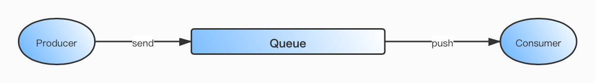 最简单的消息系统一般都会包含:生产者producer、消费者consumer、队列queue。如下图所示,仅存一个队列的情况下,生产者先向队列里投递消息,然后消费者再从队列里消费消息。
